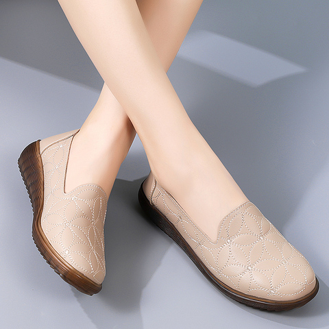 Zapatos planos bordados para mujer, zapatos casuales de un pedal para nuevas madres, zapatos perezosos