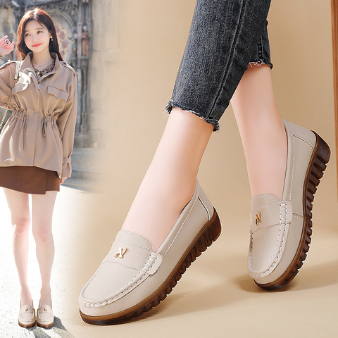 รองเท้าส้นเตี้ยปักลายสำหรับผู้หญิงรองเท้าลำลองบีนสำหรับคุณแม่รองเท้าขี้เกียจใหม่