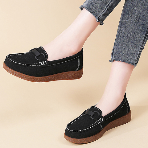 ODM kadın büyük boy rahat düz loafer'lar yaz bahar rahat Slip-On ayakkabılar kaymaz özelliği baskılı deri sonbahar